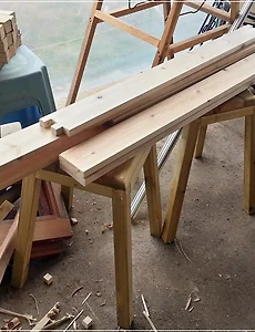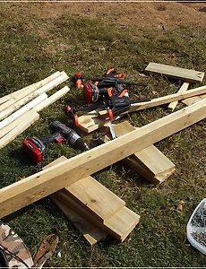 목공5 침대 다이 제작 옥장판을 바닥에 놓고 쓰시던 장모님이 연세가 드시니 무릎이 아파 바닥에 누웠다 일어나는게 힘들다고 하셔서 침대 다이를 짰다.항상 자투리 목재로 뚝딱뚝딱 작업하다가 처음으로 목재를 구입해 작업해봤더니 목재값이 장난 아니다^^목재는 향이 좋고 해충방지와 피로회복에도 좋다는 삼나무를 선택했다.침대 사이즈이기에 너무 크면 이동이나 설치 등 나중에 유지보수에도 힘들거 같아 두칸으로 나눠 설계했다.두개로 나누고 보니 통짜로 만들었다면 길이 중간에 힘받칠데가 없어 불안했을거 같은데 선택을 잘했다싶다^^ 완성한 침대 다이를 차로 실어와 설치해드렸다. 나무를 구입해 만들어본 첫 작품이라 뿌듯하면서도 한편으로 아쉬움이 많이 남는다.그 중에 옥장판에 모양에 맞게 모서리를 라운드 처리했으면 훨씬 더 이쁘지않았을까 싶어 사진으.. 2015. 2. 27. 의자 만들기 쓰다남은 목재나 길이가 애매한 목재들을 이용해 의자를 만들었다.외부에서 많이 사용하는 등받이 없는 파란색 프라스틱 의자가 모티브이다. 일단 원본 플라스틱 의자의 치수를 기준, 스케치업으로 설개도면을 그리고 목재를 재단했다. 간단한 구조이지만 사람의 몸무게를 지탱해야하기에 피스는 굵고 긴것으로, 접한면엔 목공본드를 칠해서 고정해준다. 상판도 넓은 목재가 없어 짜투리 목재를 잘라 3개를 이어붙였다.그덕에 미리 가공을 하진 못하고 고정한 다음에 직소와 대패로 각을 주고샌딩기로 최종 라운드 처리. 처음엔 무게를 지탱하기 위해 다리에도 지지대로 연결을 해봤는데앉아보니 의외로 튼튼해 원래대로의 심플한 디자인을 살리고자 중간 지지대 없이 만들었다. 지난번 탁자 만들때처럼 못쓰는 까놀라유를 듬뿍 발라주었다.이제 몇일 .. 2015. 2. 16. 테이블 만들기 몇달전 교회에서 버리는 오래된 책상을 뜯어왔엇는데 큰 테이블이 필요해 작업에 들어갔다. 싸구려 테이블쏘인데 이미 제값은 하고도 남은듯^^나무재단할때 정말 요긴하다. 테두리에 불필요한 부분이 있어 양쪽을 3cm씩 잘라냈다. 옛날 가구들은 특히나 니스칠이 심하다.전기 샌딩기로 갈아낸다. 샌딩을 마친 자재로 상판지지대를 만들었다. 지지대 위에 재단한 상판나무를 올려놓고 고정. 다리를 뺀 상판전체가 완성되었다. 다리는 이동의 편의성을 위해 착탈이 가능하도록 만들었다.삽입되는 부분을 어떻게 할까 궁리하다가 중반정도를 깎아내서 지지대 턱에 걸치도록 만들었다.사진은 못찍었는데 상판 하부에도 저 부분이 맞물리도록 나무를 대었다. 샌딩까지 마친 테이블 다리. 아직 길이를 맞추지 않은 상태. 좀더 고운 사포로 샌딩을 마치.. 2014. 10. 4. 작은 평상 만들기 올봄에 우연찮게 얻어놓은 나무를 이용해 작은 평상을 만들었다.큰 평상은 마당용으로 쓰고있어 일하다 참먹거나 잠시 쉴때 쓸 용도로 작게 만들었다. 이리저리 사모은 연장들이 있으니 뿌듯하다^^ 클램프로 단단히 잡아놓고 드라이버 작업을 하면 편하다. 반쯤 완성된 상판 짜투리나무를 이용해 만들어 짧은 나무를 이어 2단이 되었다.2단으로 연결하는 나무에는 바닥쪽으로 하중을 받을 수 있도록 양쪽으로 받침나무를 덧대어 고정한다. 완성된 상판! 완성된 상판에 붙일 다리를 만드는데 어느새 날이 어두워졌다. 드디어 완성!가로세로가 대략 1.5미터*1미터 정도의 미니평상이다. 오일스텐 대신에 전에 사두었던 유통기한 임박한 식용유(쌀눈유)를 몇차례 바르고 말리고해서 최종 완성된 모습. 2013. 10. 27. 목재판넬 개집 짓기 마당에 기르는 강아지가 3마리인데 그중 얼마전 6마리의 새끼를 낳은 녀석의 집을 만들었다.겨울이기도해서 나름 신경써 꼼꼼하게 작업한것은 다름아닌 '목재단열판넬 개집!' 5미리 합판에 3cm각목을 대고 내부 3cm만큼 스티로폼으로 채워넣은 수공예 목재판넬을 이용한 집이다^^ 스케치업으로 일단 모양을 잡고, 치수를 기입해 나무를 준비한다.따로 나무를 구입하지않고 주변에서 안쓰는 나무들을 얻어다 짜집기해 활용했다 (나름 친환경^^) 어딘가에 버려져있던 나무들 총집합~ ^^ 이렇게 판을 만들어서, 스티로폼을 채워준다. 단열나무판넬의 탄생~! 만들어진 나무판넬들로 벽을 세워주고, 벽에도 역시 따뜻하게 스티로폼 가득~ 완성된 개집~ 새집에 들어선 강아지들... 새집증후군은 없겠지? ^^ 2013. 2. 2. 이전 1 다음 반응형